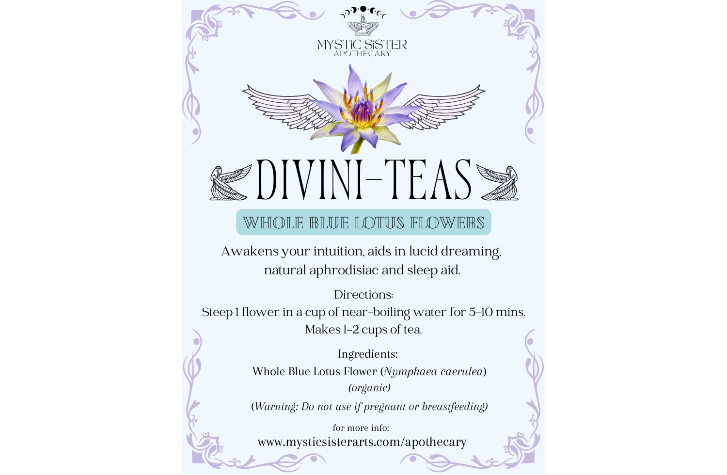 A hand-selected package of the highest quality whole blue lotus flowers that can be steeped as a tea or used however desired.